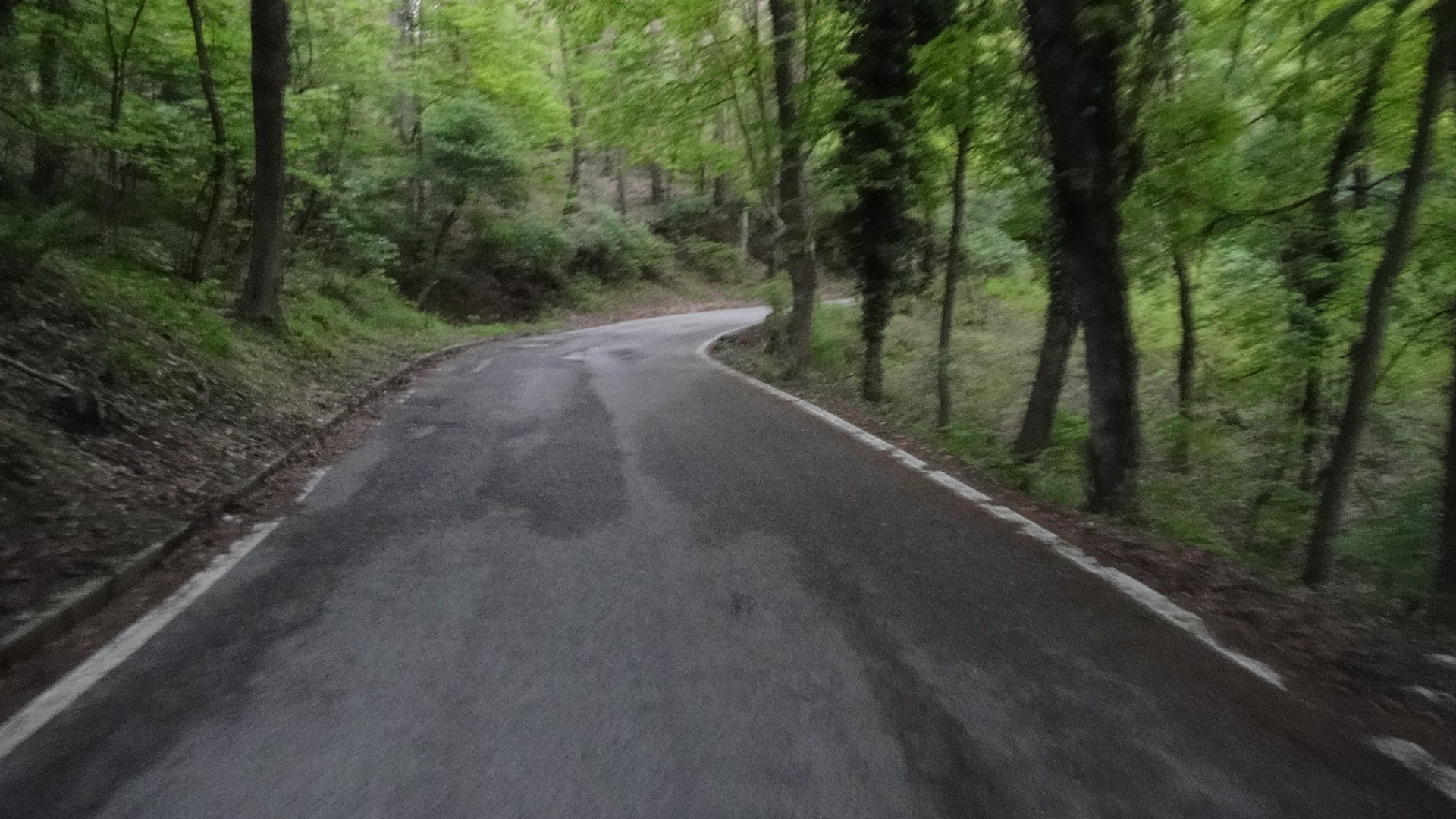 pagna per quasi tutta la salita, concedendoci brevi scorci sulla pianura padana, ma anche dandoci la possibilità di valutare il dislivello raggiunto, difficilmente ho “battezzato” salite dove il dislivello raggiunto è così immediato da valutarsi, probabilmente grazie alla morfologia della montagna ed al disegno della strada che sto percorrendo.