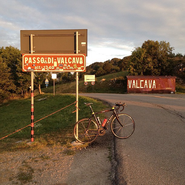 Al tornante si rifiata, ma le pendenze calano di pochissimo, comunque sempre sopra il 12%. A mio parere il tratto più infame di questo ultimo tronco si trova alle porte del paese Valcava, un rettilineo di circa 300 mt che morde le gambe ancor più del primo tratto di inizio “ballo”. Qui ho dato tutto quello che avevo, dimenticando il controllo di soglia, abbandonando qualsiasi velleità di stile, ho spinto sui pedali come non mai, barcollando un poco ma senza mollare, era impensabile mollare proprio adesso che mancano poche centinaia di metri dalla cima, a poche centinaia di mentri dal GPM !