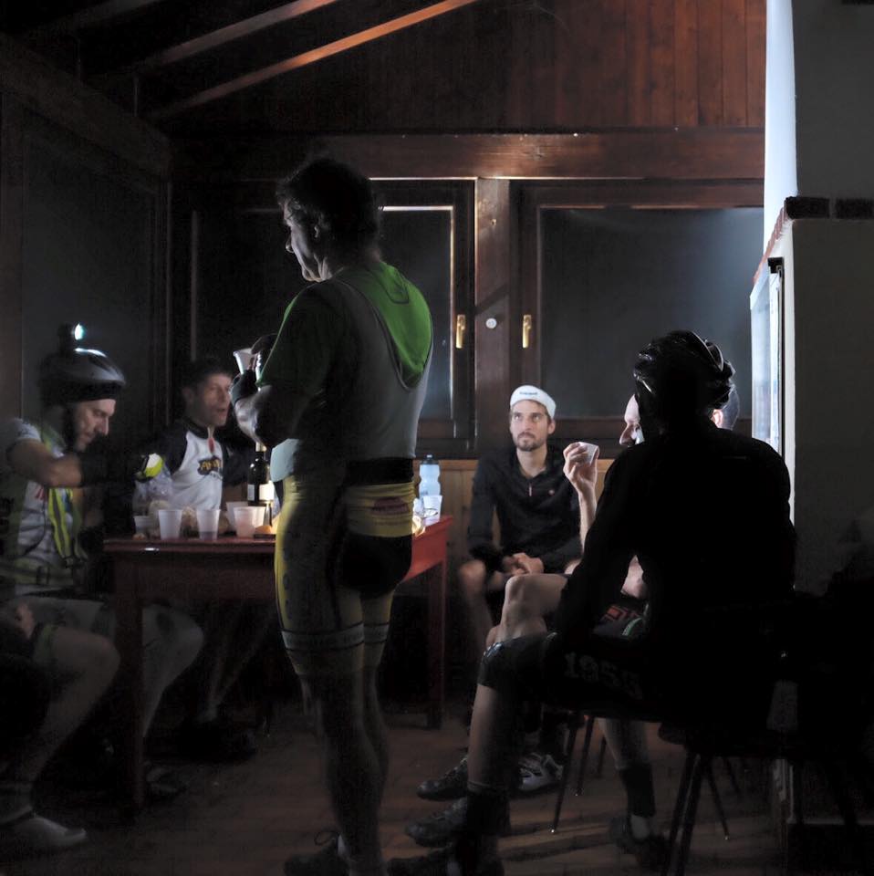 Cambio di maglia, brindisi agli Arditi, foto del branco, un po’ di “social” e dopo aver rimesso tutto a posto per chi verrà dopo di noi, risaliamo in bici per recuperare Erba. Dimenticavo, anche se per tutta la serata le nuvole erano le padrone incontrastate del firmamento, la Luna è riuscita ad affacciarsi giusto ora per ricompensarci della fatica fatta. Serata perfetta!
