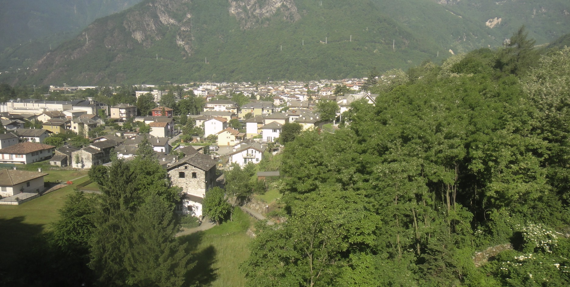 A parte un disguido con le coincidenze dei treni, riesco comunque ad arrivare a Chiavenna 10 minuti dopo le 9. Ad attendermi trovo già Giovanni e Francesco, caricati a molla per la sfida e per la fortuna di avere sopra le teste un cielo splendido, contro ogni previsioni meteo.