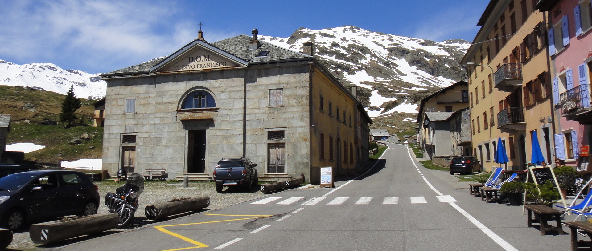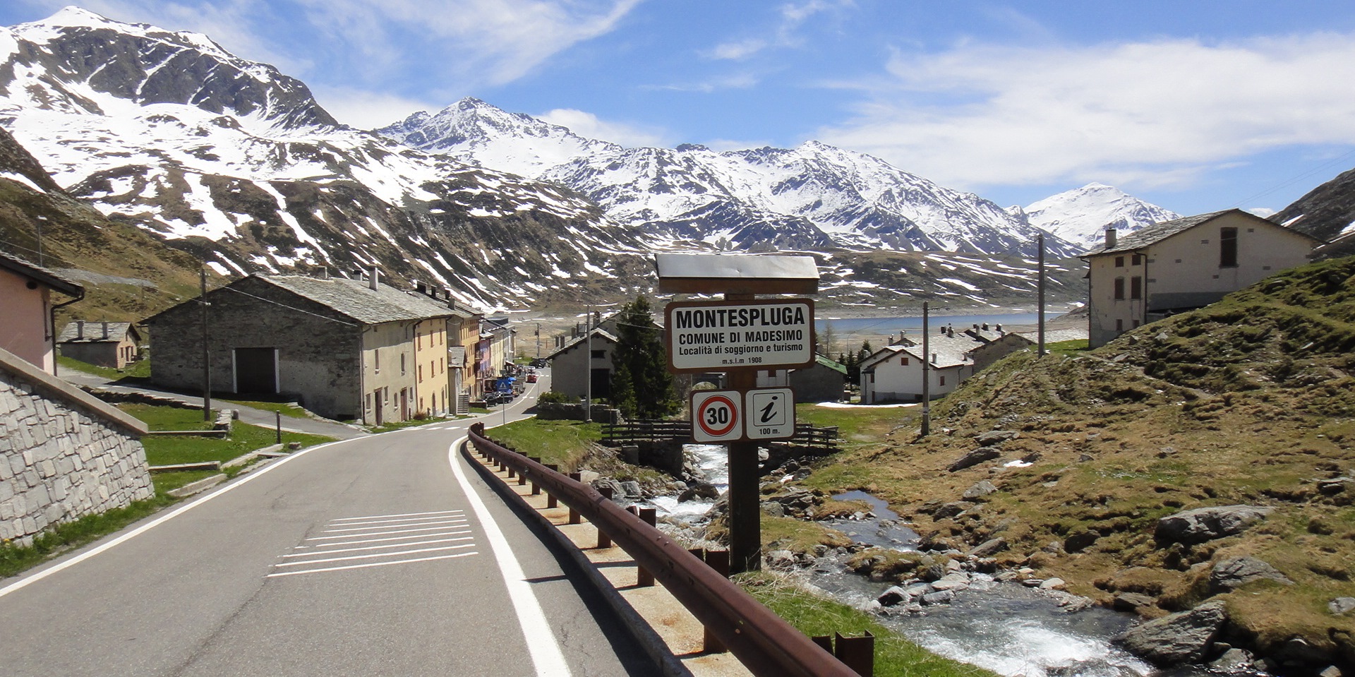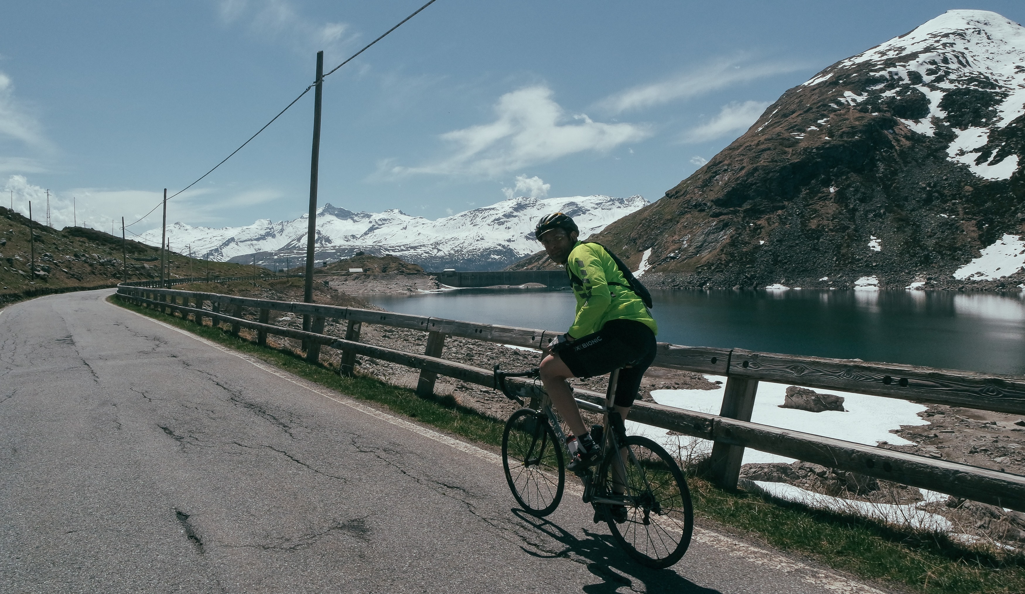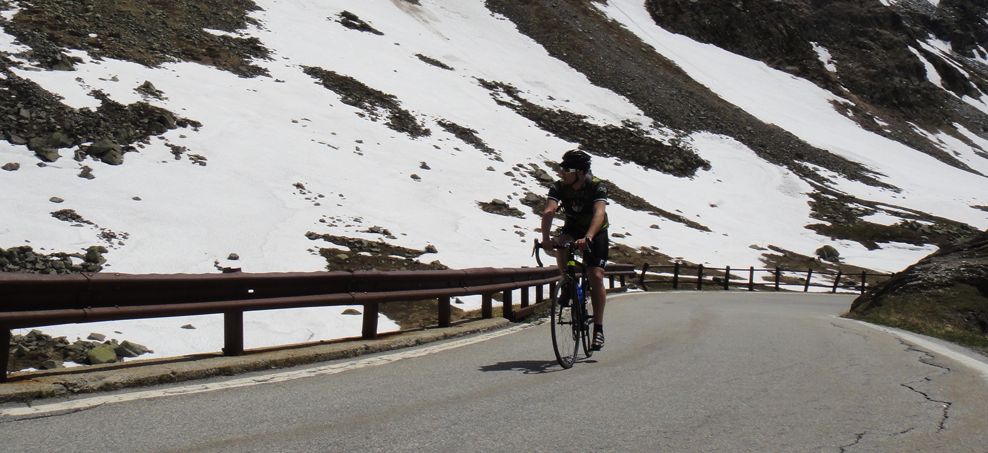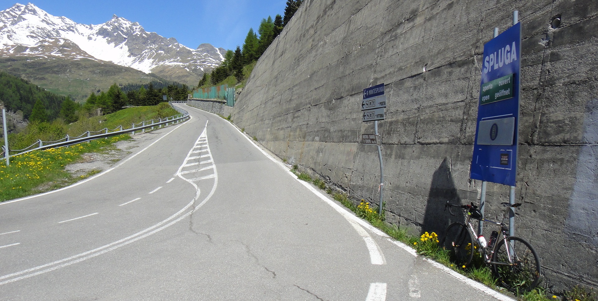 Passo Spluga, 2.114 metri sul livello del mare, più o meno 30k di salita da Chiavenna, punto di partenza ufficiale per la scalata, 1780 mds ma con molti punti di rifiato e pendenze mai cattive da spezzare fiato e gambe. Questa è la sua carta d’identità.