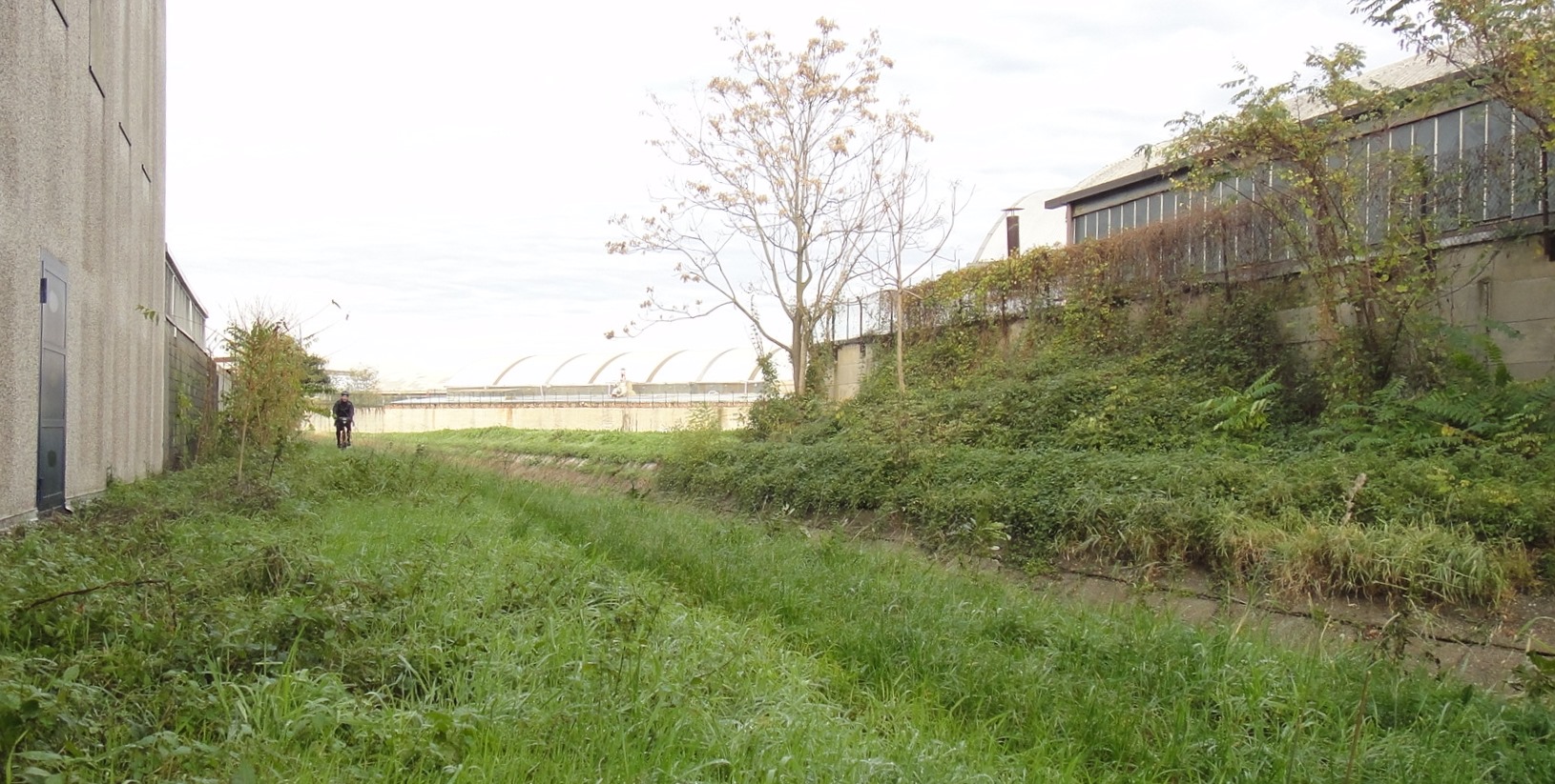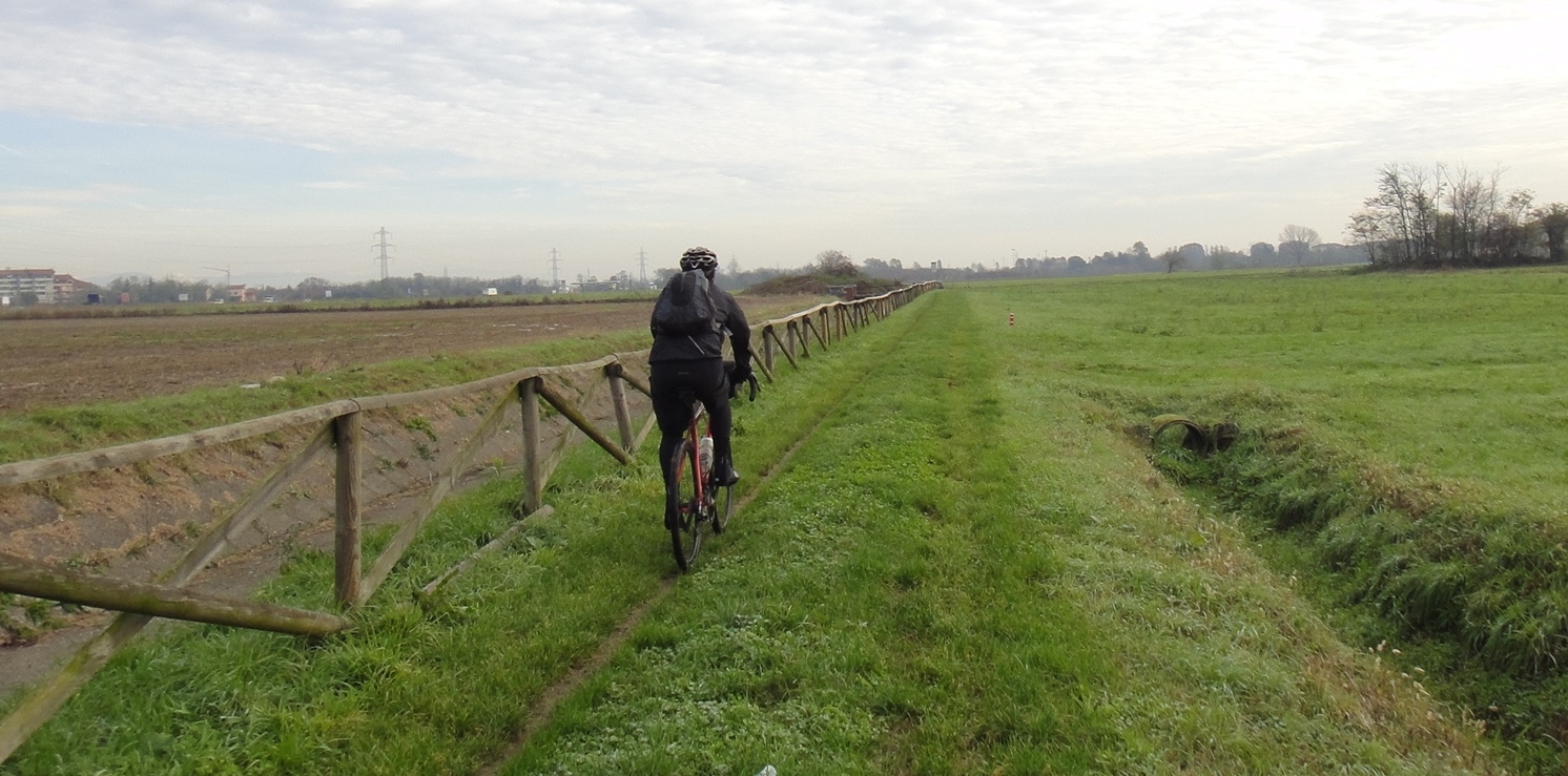 Una volta superata questa parte caotica di incroci di strade, decidiamo di risalire sul ciglio, come è giusto che sia anche se ci troviamo in compagnia di un Villoresi orfano dell’acqua.