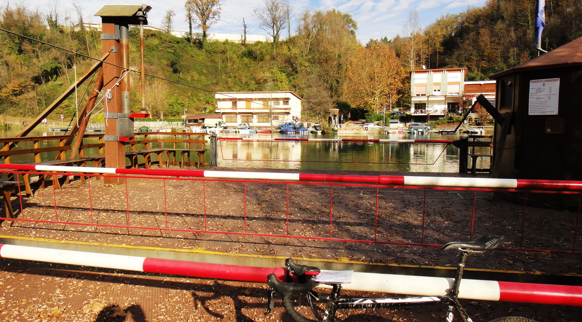 Tornando alla cronaca, una Gravel che si rispetti non si finisce senza almeno una foratura, oggi il fortunato è Giovanni, domani sarò io. Sosta per cambio budello e via di nuovo, tra poco si passerà sotto il Ponte di Paderno e subito dopo ci sarà il traghetto Leonardiano ad attenderci, traghetto che segnerà anche la fine di questo secondo tratto e l’inizio del trasferimento verso le salite di Valfredda.
